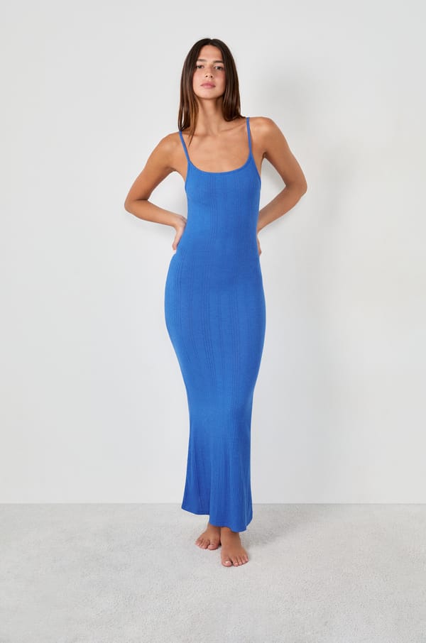 Camisón largo de canalé con tirantes finos;${refinementColor}