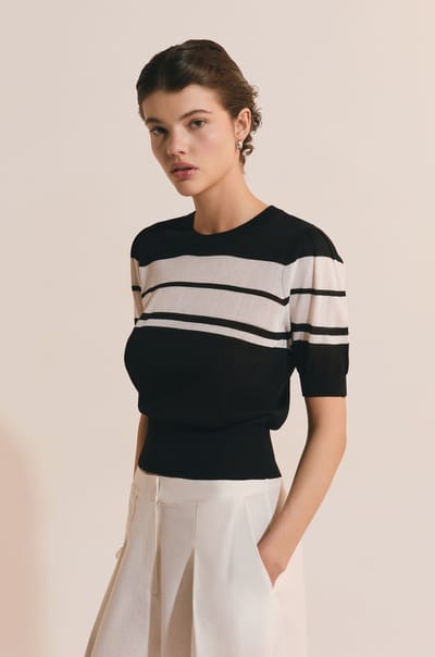 • Jersey de punto con mangas 3/4 y cintura entallada;${refinementColor}