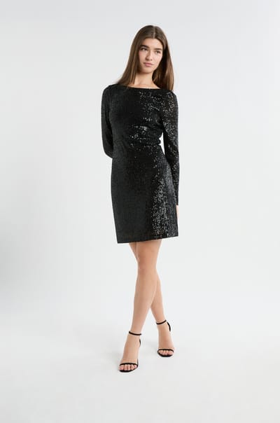 Vestido de manga larga con lentejuelas;${refinementColor}