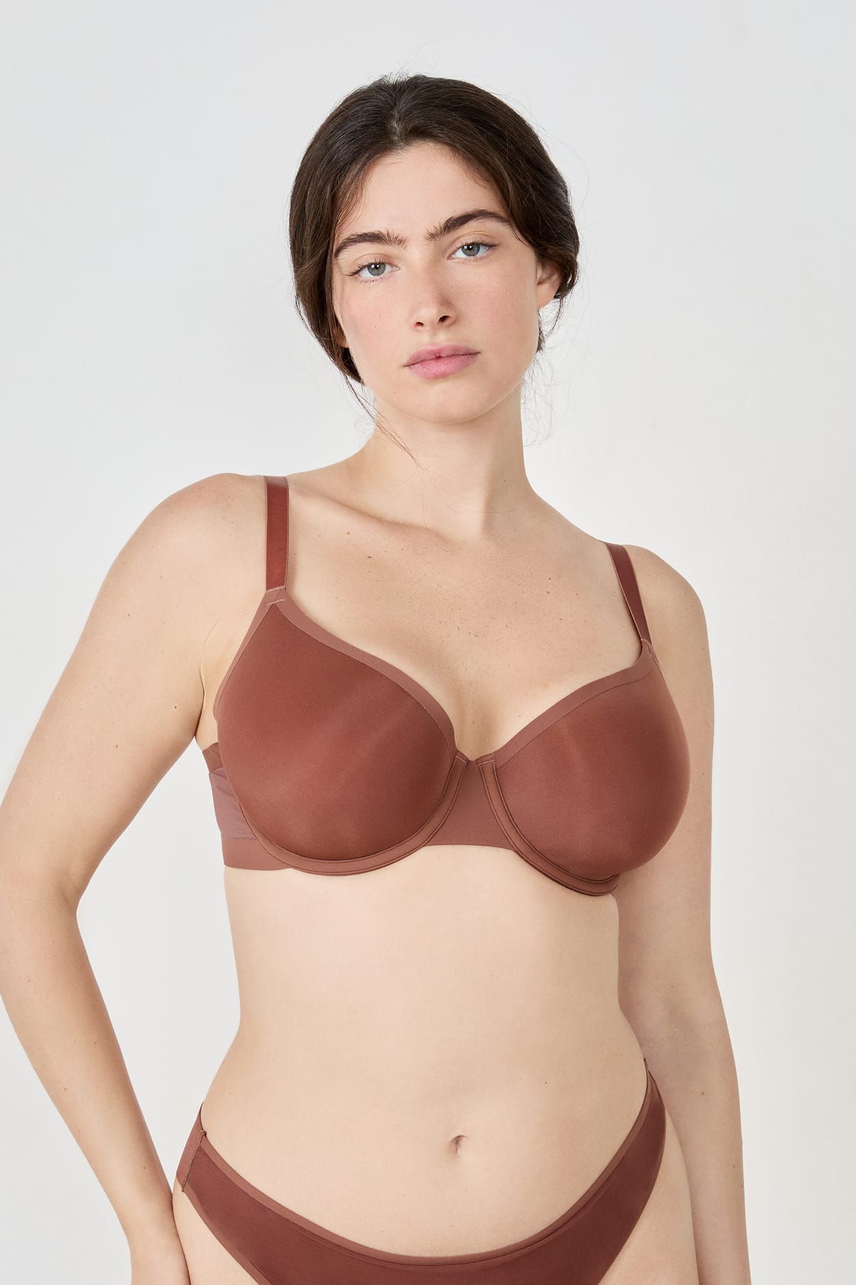 Ideal para llevar debajo de una camiseta y conseguir un bonito contorno naturalmente redondeado, este ligero sujetador cuenta con copas finas y aros. Confeccionado en malla, es ultra cómodo. Te acompaña en tu día a día con suavidad.