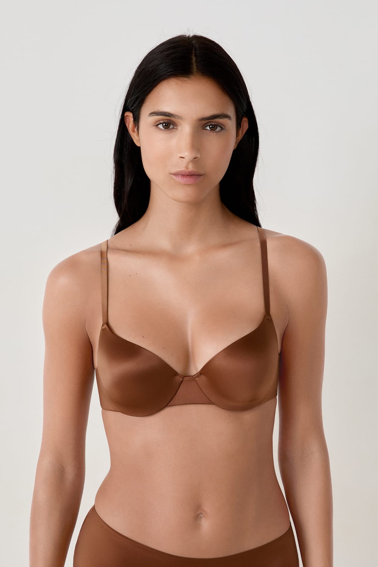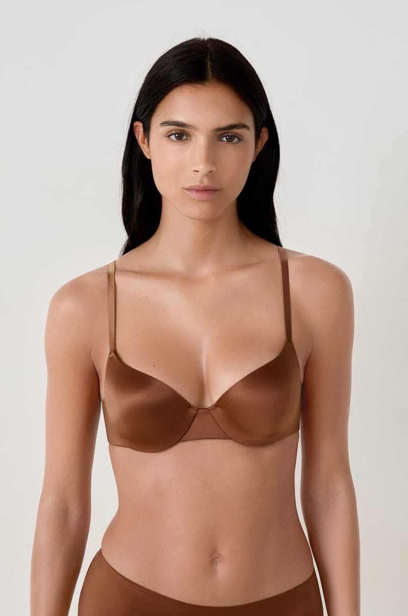 • Soutien-gorge • Forme innovante 2 en 1 • Coques fines • Coussinets amovibles effet push up • Microfibre satinée