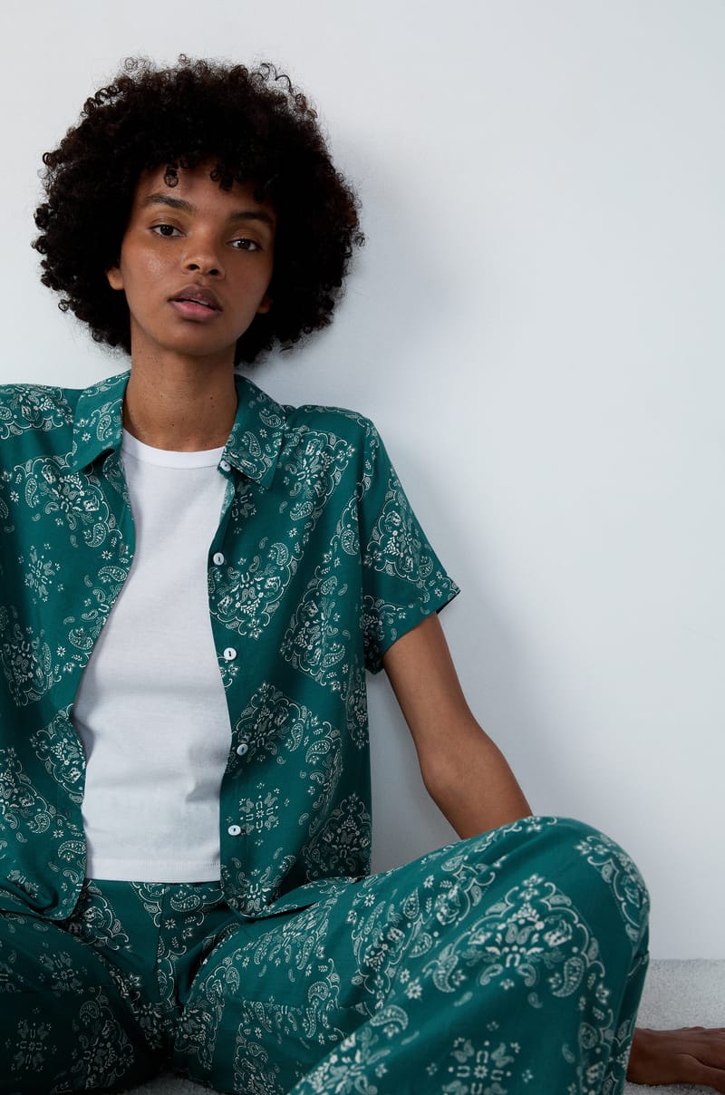 L'imprimé bandana, coup de coeur de la saison s'affiche en all over sur cette chemise de pyjama légère munie de manches courtes et d'une fermeture boutonnée.