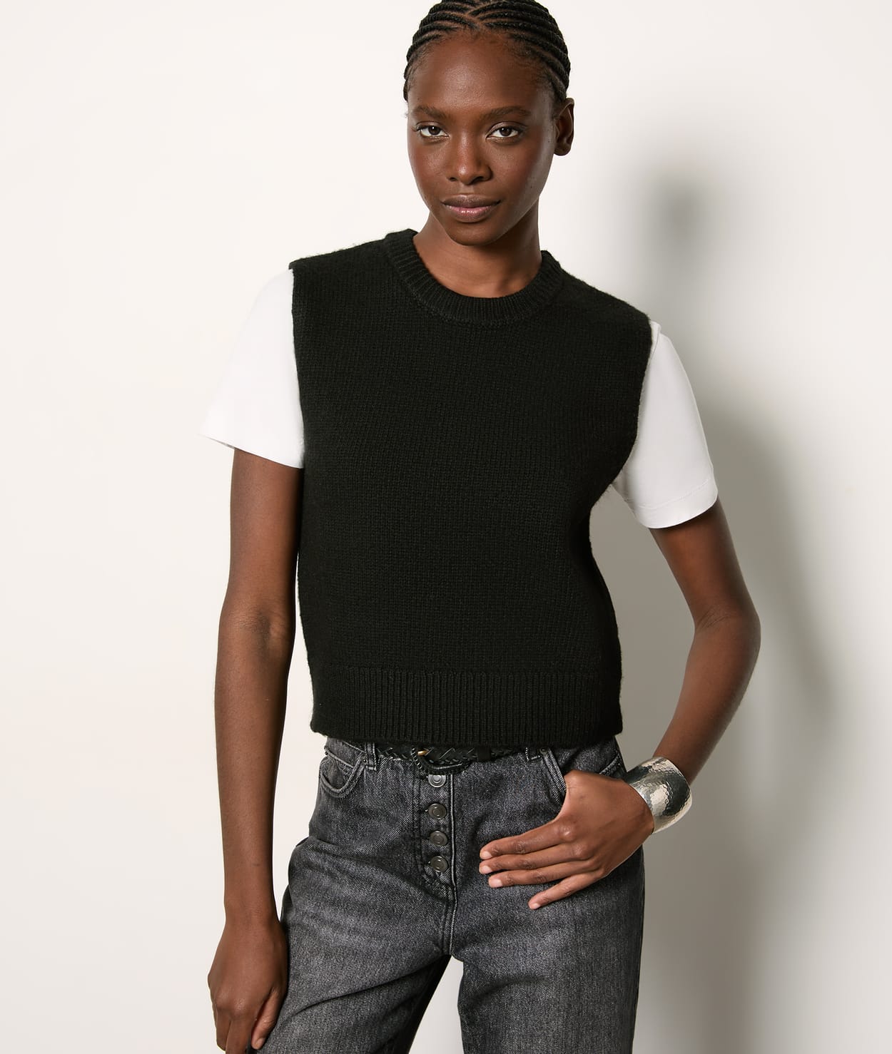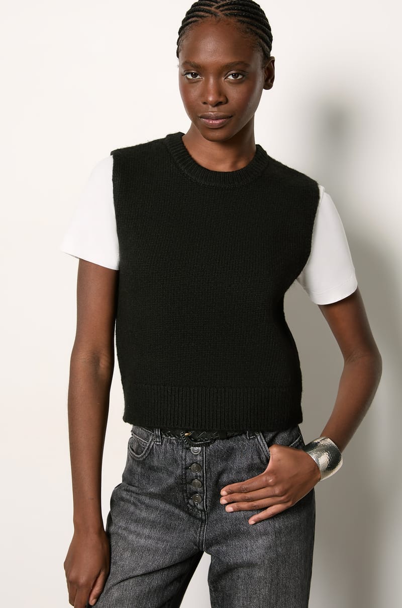 Clásico y atemporal, este jersey sin mangas de punto fino es una prenda imprescindible si quieres dominar el arte de las capas con elegancia. Ya se lleve sobre una camisa o una camiseta, es una pieza atemporal que añade un toque de estilo a cualquier conjunto.