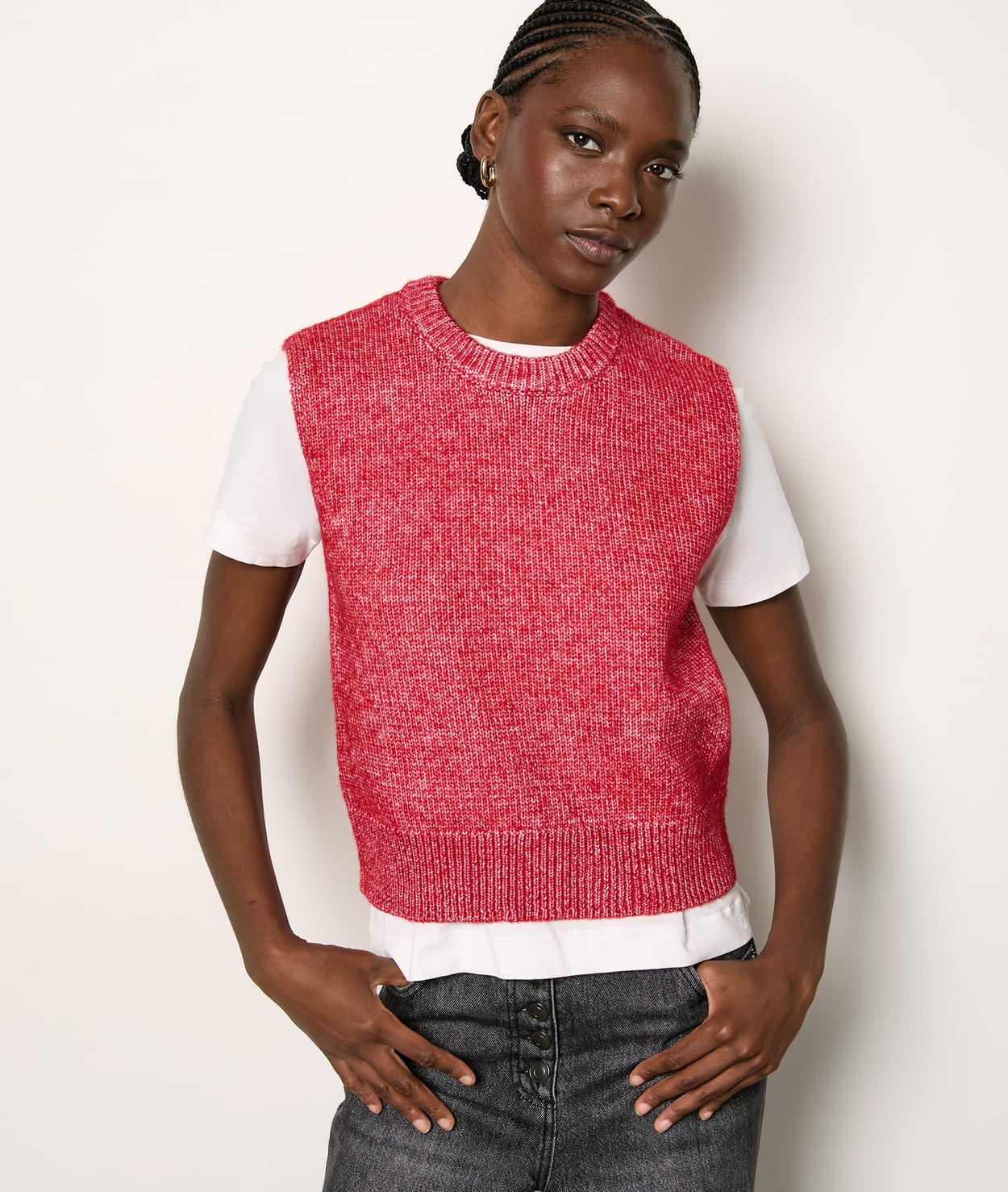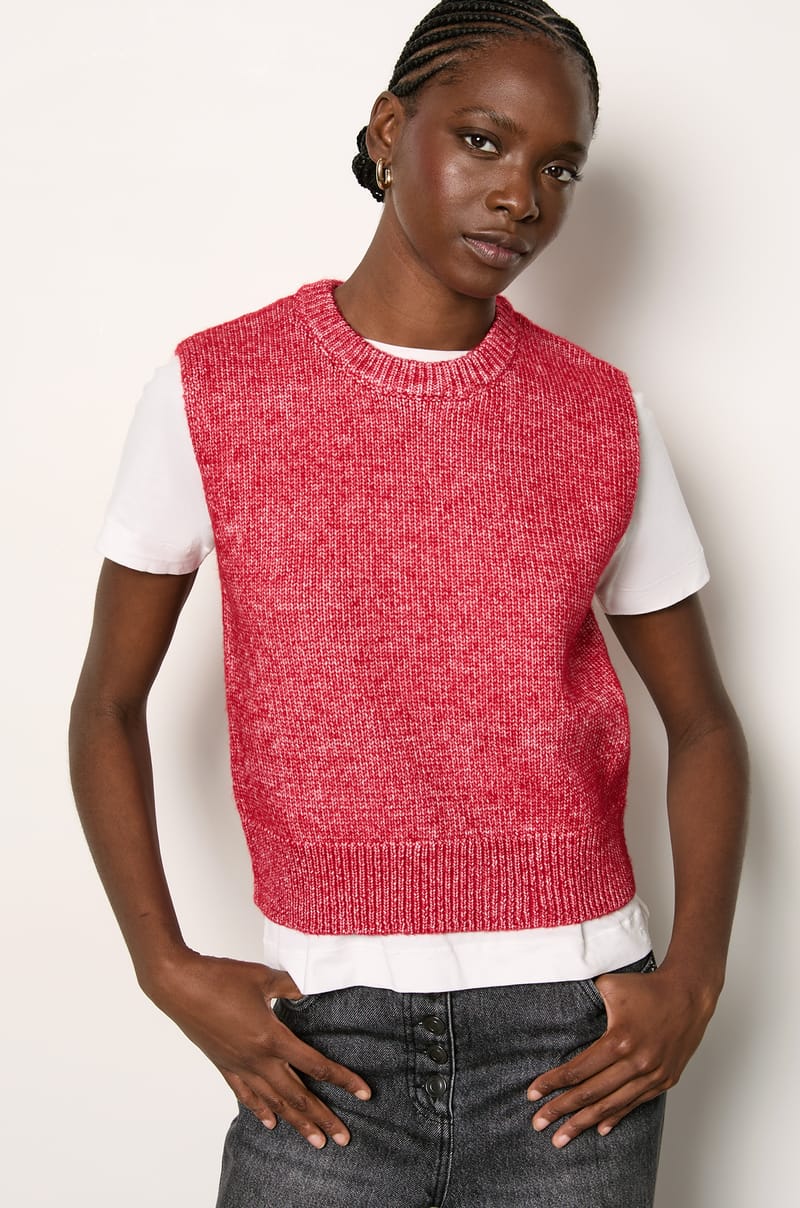 Clásico y atemporal, este jersey sin mangas de punto fino es una prenda imprescindible si quieres dominar el arte de las capas con elegancia. Ya se lleve sobre una camisa o una camiseta, es una pieza atemporal que añade un toque de estilo a cualquier conjunto.