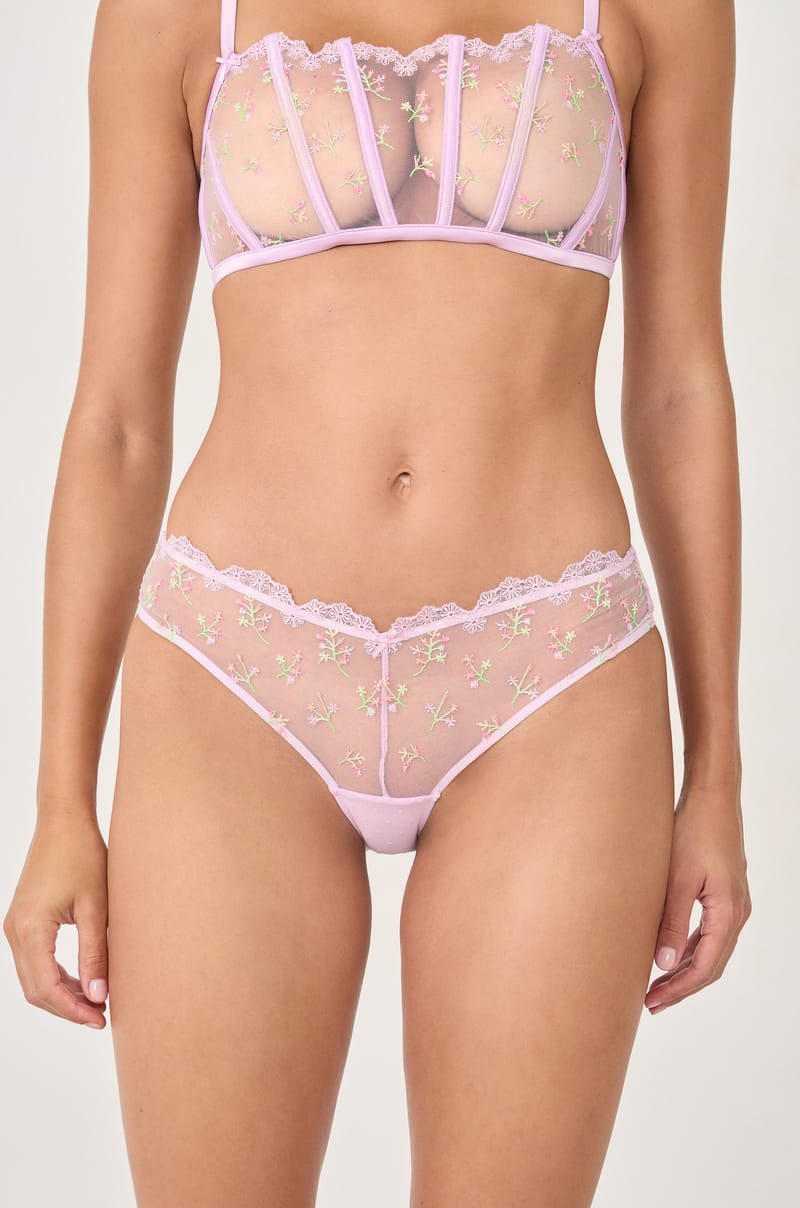 Alliant élégance et délicatesse, ce hipster offre une dentelle délicate et transparente. Il est festonné et sublimé par des broderies fleuries pour une note féminine.