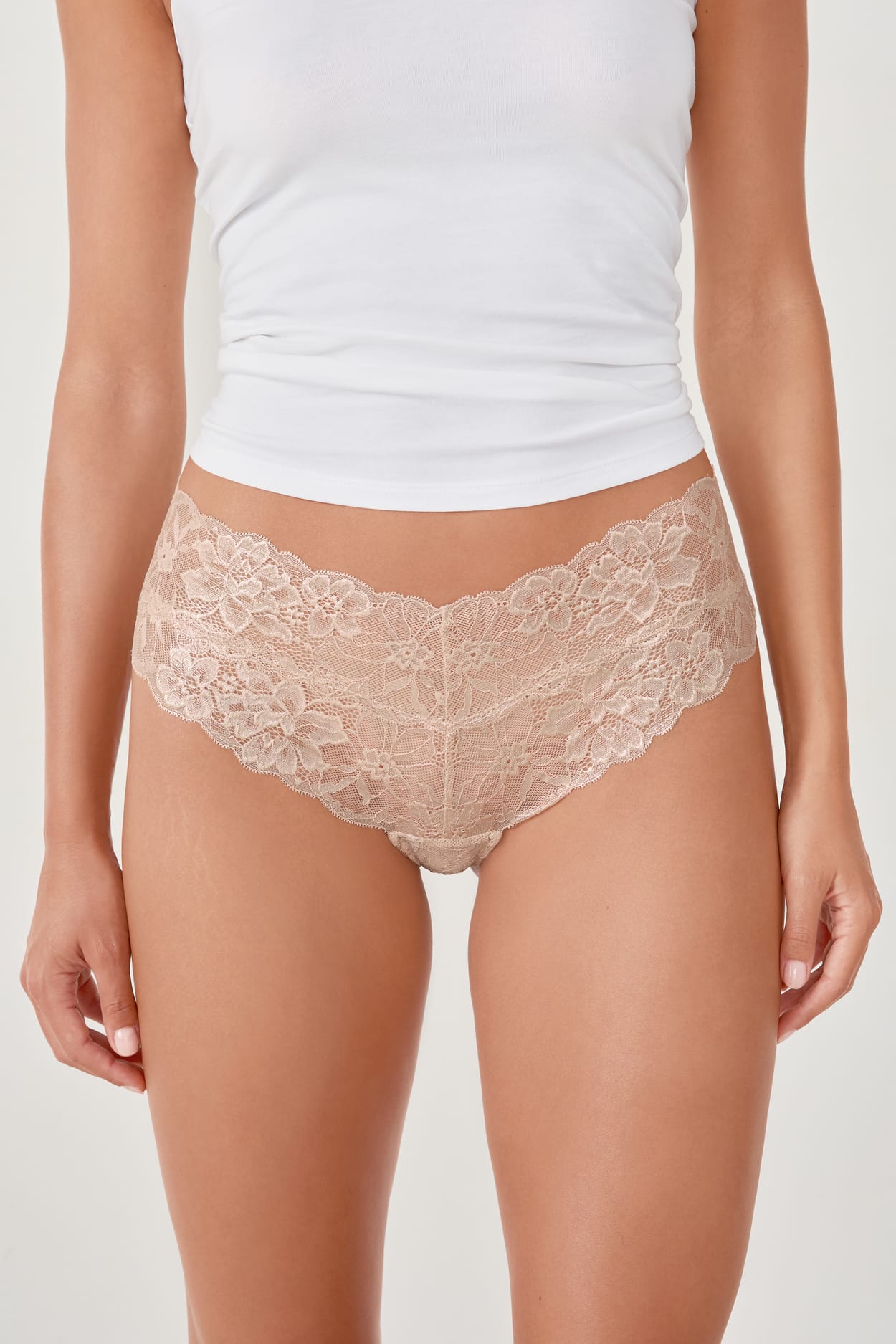 Bajo su encaje, esta Braguita brasileña revela sutilmente la piel. La transparencia y las hendiduras le dan un aspecto ultra sexy. Su forma en V abraza sensualmente tus curvas para revelar tu silueta.