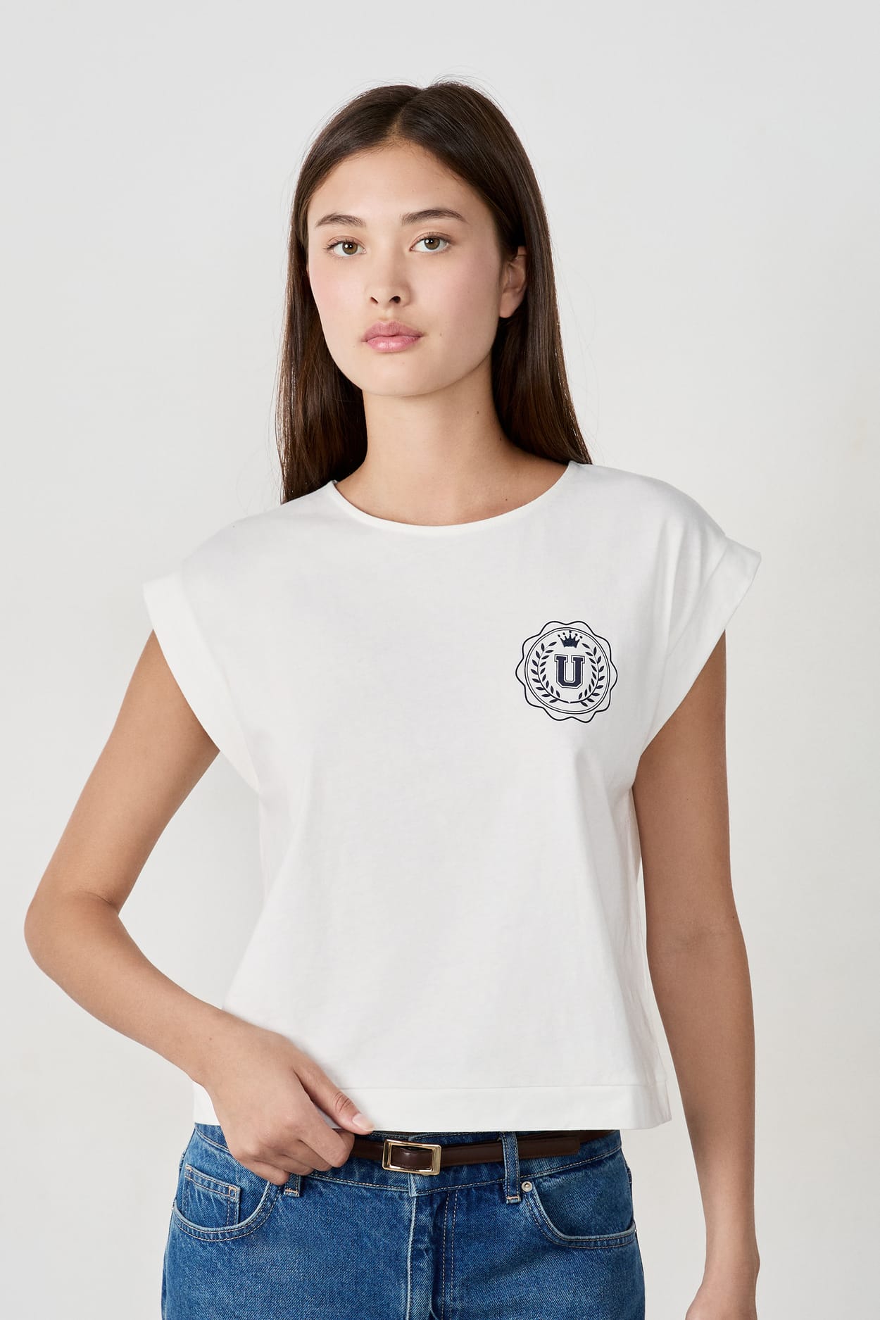 Inspirada en las universidades americanas, esta camiseta de algodón luce un estampado de «U» rodeado de laurel y realzado con una corona bordada. Una pieza informal que combina comodidad y detalles cuidados.