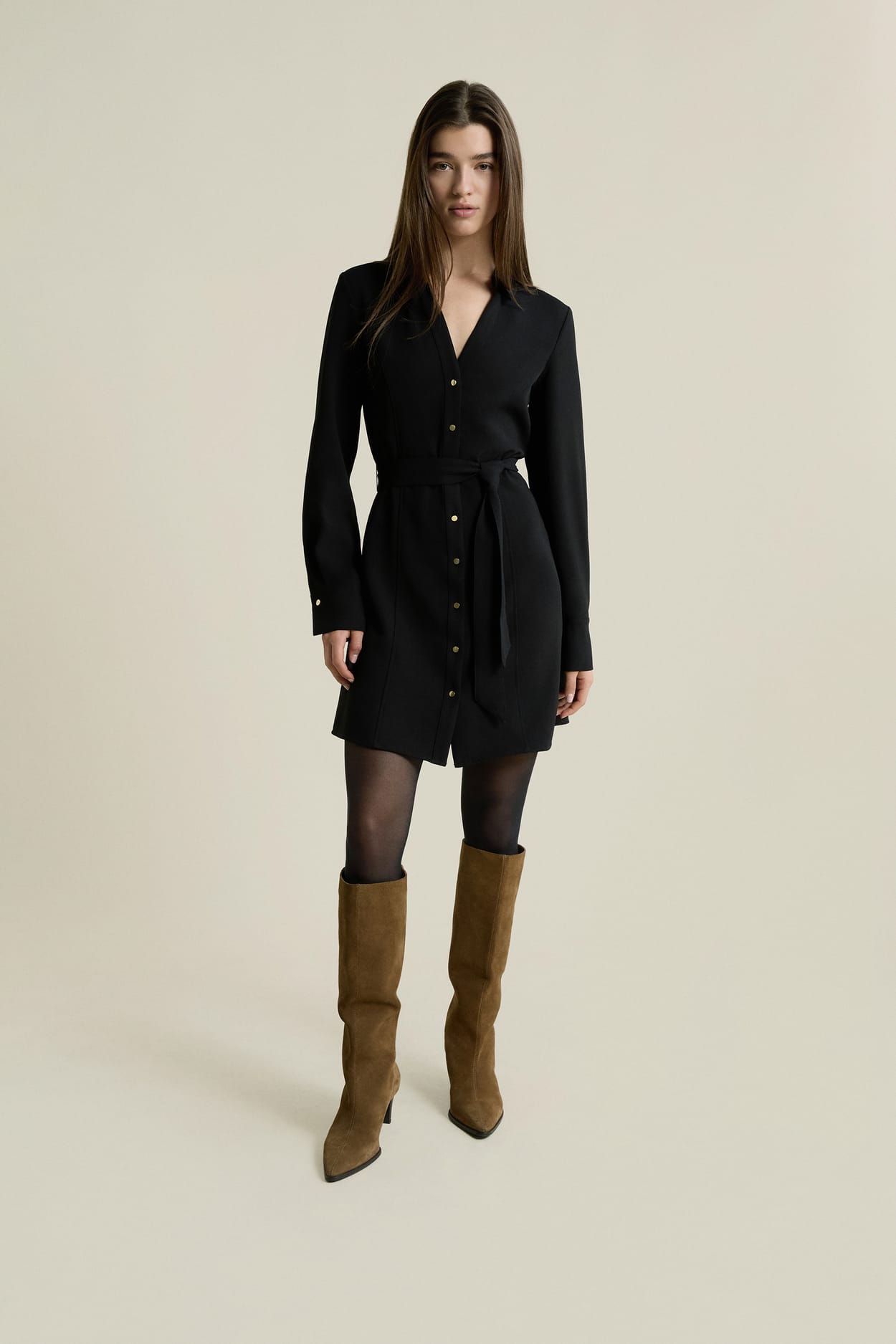 Facile à porter, cette robe manches longues opte pour une coupe cintrée et un col chemise....