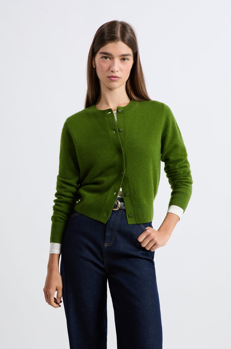Essentiel du vestiaire, ce pull cardigan manches longues est confectionné en cachemire. Muni d'un col rond et d'une fermeture boutonné, c'est un intemporel chic à porter seul ou superposer.