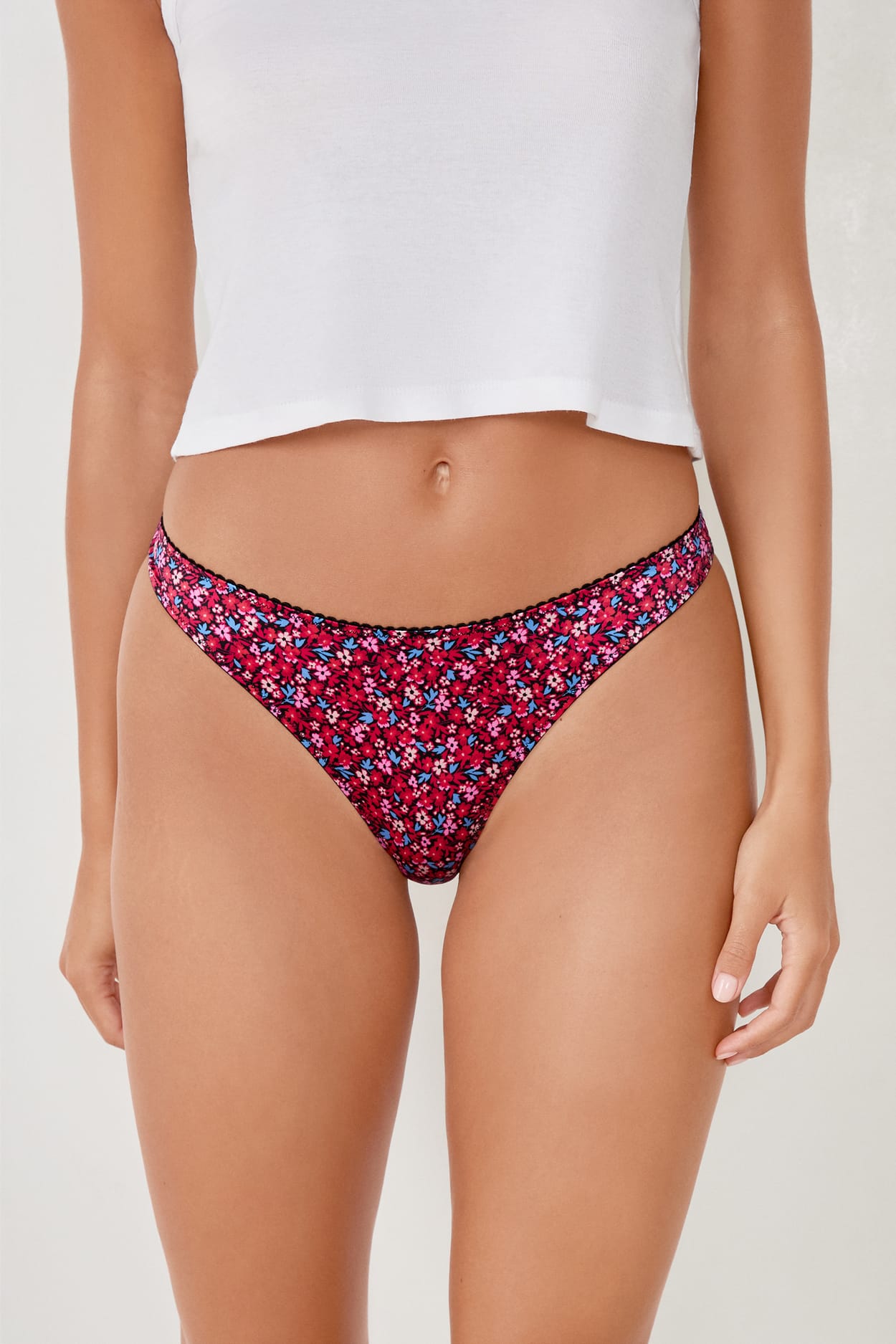 Délicat et confortable, ce string est conçu en microfibre. Muni d'un imprimé fleuri, il est réhaussé d'un bord supérieur festonné. Idéal pour allier légèreté et invisibilité.