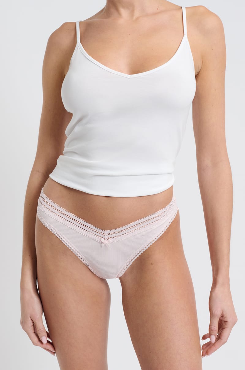 Tanga V-shape de microfibra y encaje;${refinementColor}