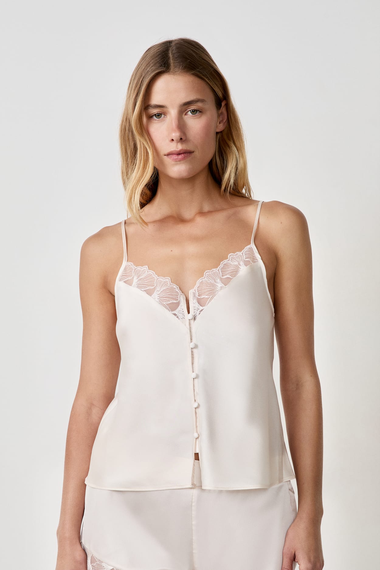 Top de satén con tirantes finos y encaje